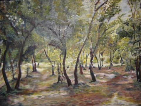 J'ai réalisé un tableau à l'extérieur en m'inspirant d'un paysage proche de la commune de Domjean, comme les autres participants. Je me suis placée au Moulin Hébert, au bord de la Vire .