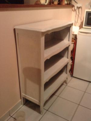 En bois teinté chêne foncé, cette petite commode a pris un air moderne grâce à une couleur blanc laqué.