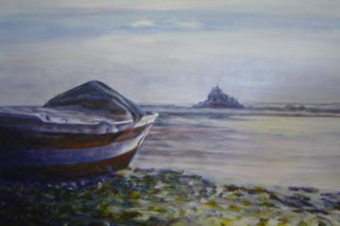 Offert à mon amie Sylvie, ce tableau représentant le Mont-Saint-Michel a été peint en 2009 à l'atelier de Grandcamp Maisy chez Monsieur De Varjac, peintre et professeur d'Art Plastique.