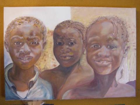 Mes amis Eric et Cath connaisent bien le Burkina et m'ont montré de très beaux portraits photo d'adultes et d'enfants , aussi je me suis inspirée de celles-ci pour réaliser ce tableau.